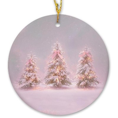 Lomsoe Vintage Christmas Tree Ceramic Ornament Gift Pink Winter Snow Forest Coquette Xmas Tree Decorative Hanging Ornament Decor Winter Decor