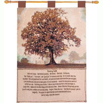 Manual Woodworkers and Weavers Living Life Wall Hanging with Finial Rod, 26x36 Inches, Inspirational Woven Cotton Tapestry Decor