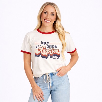 Happy Birthday America Retro - Women's Ringer Graphic T-Shirt