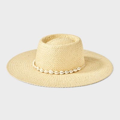 Straw Wide Brim Boater Hat with Shell Detail - Universal Thread™
