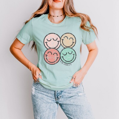 S.W.Smiley Embroidered Smiley Face Outline - Women's Garment Dyed Graphic T-Shirt