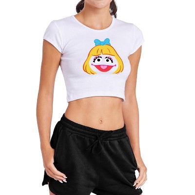 Prairie Dawn Face Women's Cap Sleeve Baby Rib Crop Top White