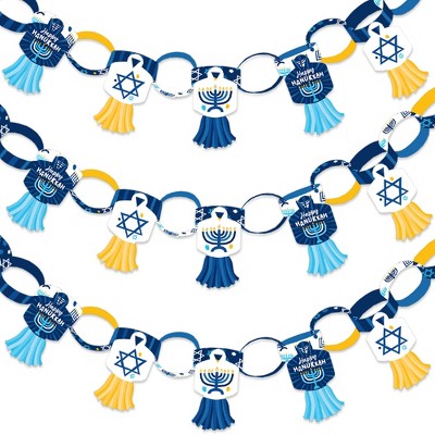 Big Dot of Happiness Hanukkah Menorah - 90 Chain Links and 30 Paper Tassels Decoration Kit - Chanukah Holiday Party Paper Chains Garland - 21 feet