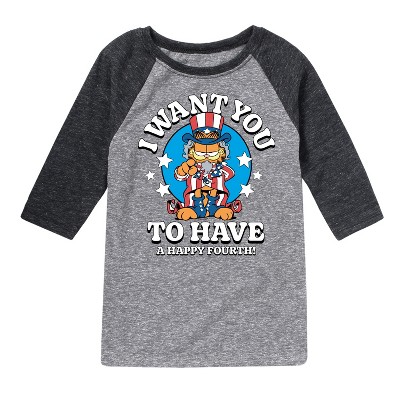Boys' - Garfield - Want You To Have A Happy Fourth Raglan Graphic T-Shirt