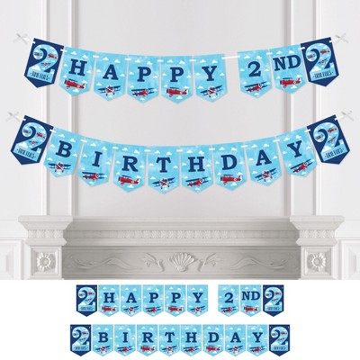 Big Dot of Happiness 2nd Birthday Taking Flight - Airplane - Vintage Plane Second Birthday Party Bunting Banner Party Decorations - Happy 2nd Birthday