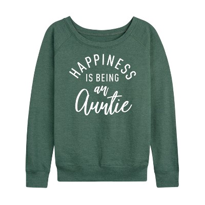 Women's - Instant Message - Happiness Auntie Lightweight French Terry Wide Neck Long Sleeve Graphic Shirt