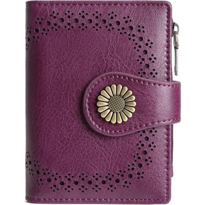 Clotth Small Wallet for Women , RFID Blocking PU Leather Wallets with Zipper Pocket,Thin Floral Engraved Design for Daily Use & Travel,Gift