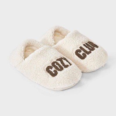 Aéropostale Women’s Fuzzy Chick Mule Slippers – Ivory Slip-On House Shoes with Yellow Embroidered Chick & Flower