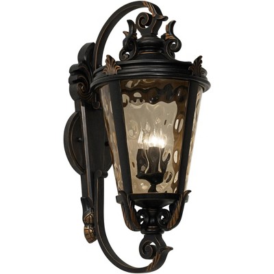 John Timberland Casa Marseille Rustic Outdoor Wall Light Fixture Veranda Bronze Ornate Scroll 36" Champagne Hammered Glass for Post Exterior Barn Deck