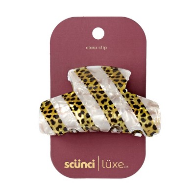 scünci | lüxe Acrylic Stripe Claw Clip - Pearly Ivory & Speckled Tort