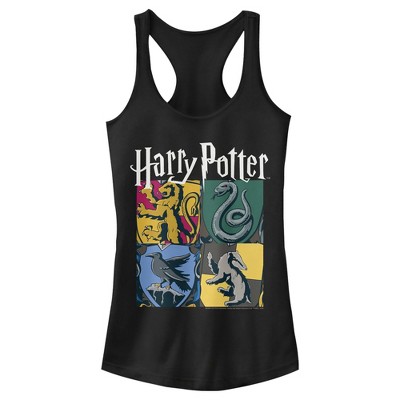 Juniors Womens Harry Potter Hogwarts Houses Vintage Collage Racerback Tank Top