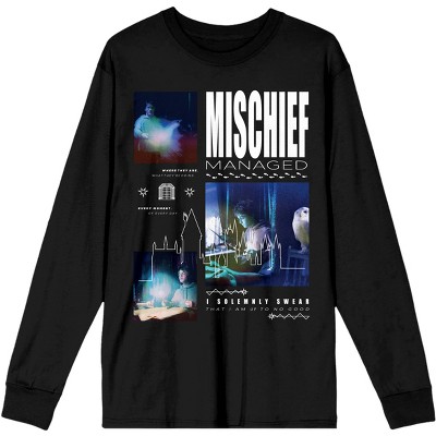 Harry Potter Mischief Managed Long Sleeve Black Graphic Tee