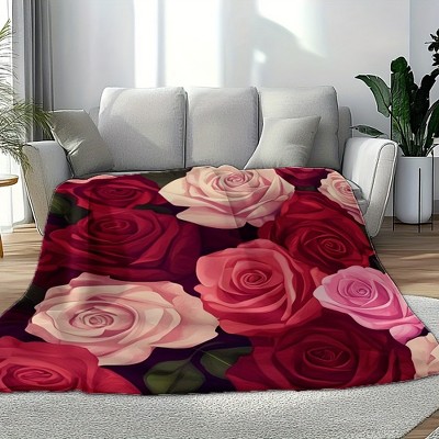 Lomsoe Valentine'S Roses Pattern Flannel blanket,Ideal for Couples, Family, Bed, Sofa.Ideal Valentine's Day Gift.Suitable for all seasons.