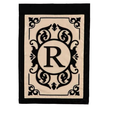 Evergreen Flag Cambridge Chic Letter R Monogram Applique Garden Flag - 12.5" Wide x 18" High