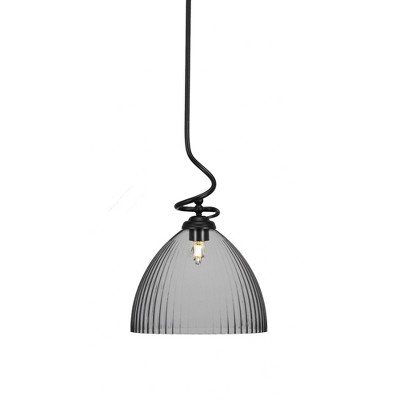Toltec Lighting Capri 1 - Light Pendant in Matte Black with 14" Clear Ribbed Shade