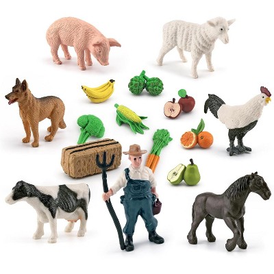 TEMI Mini Farm Animal Figures Set, Plastic Educational Toys and Cake Toppers for Kids