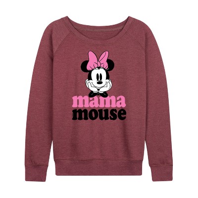 Women's - Disney - Mama Mouse Minnie Lightweight French Terry Wide Neck Long Sleeve Graphic Shirt