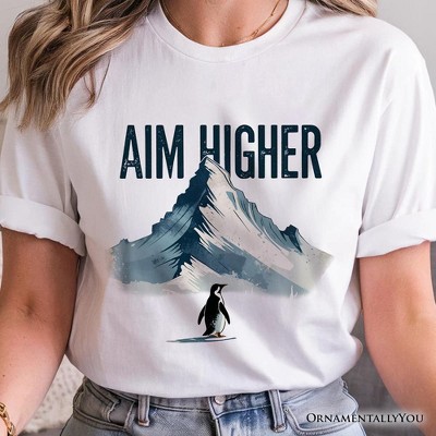 Aim Higher Penguin T-Shirt, Vintage Mountain Motivational Quote Tee | OrnamentallyYou