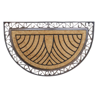 A1HC Half Moon Rubber Coir Door Mat 30 x 48 Outdoor Entryway Front Door Mat with Scroll Border