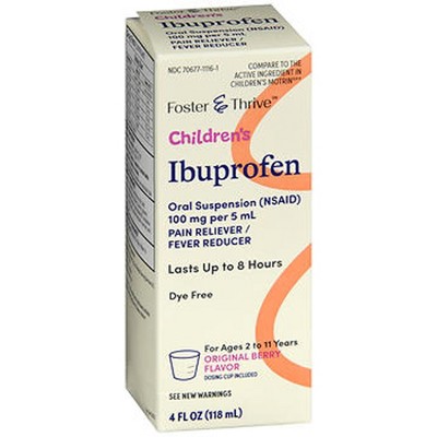 Foster & Thrive Children’s Ibuprofen 100mg, Berry, Liquid Pain Reliever and Fever Reducer for Kids in Tasty Berry Flavor 4 Oz