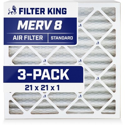Filter King 21x21x1 Air Filter | 3-PACK | MERV 8 HVAC Pleated A/C Furnace Filters | MADE IN USA | Actual Size: 20.5 x 20.5 x .75"