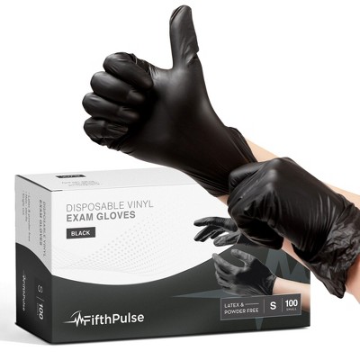 FifthPulse Disposable Vinyl Exam Gloves, Black, Box of 100 - Powder-Free, Latex-Free, 3-Mil Thickness