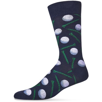Memoi Men's "Golf Ball and Tee" Rayon from Bamboo Blend Novelty Crew Socks