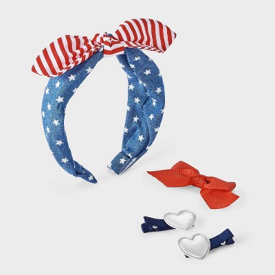Girls' 3pk Americana Scallop Striped Headband Set - Cat & Jack™ Red/White/Blue