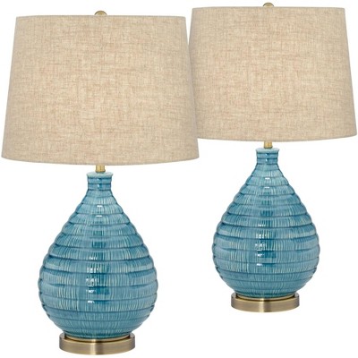 360 Lighting Kayley 24" High Small Mid Century Modern Coastal Table Lamps Set of 2 Blue Ceramic Living Room Bedroom Bedside Nightstand House Office