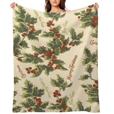 FIONECA Vintage Holly Bell Poinsettia Pattern Classic Christmas Throw Blanket Holiday Winter Festive Decor 50x60 inches