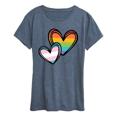 Women's - Instant Message - Rainbow And Trans Flag Hearts Short Sleeve Graphic T-Shirt