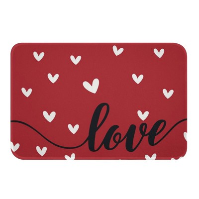 Valentine's Day Red & White Heart "Love" Dual-Use Doormat & Bath Mat - Crystal Velvet, Non-Slip Absorbent, Ideal Gift 15.7x23.6in