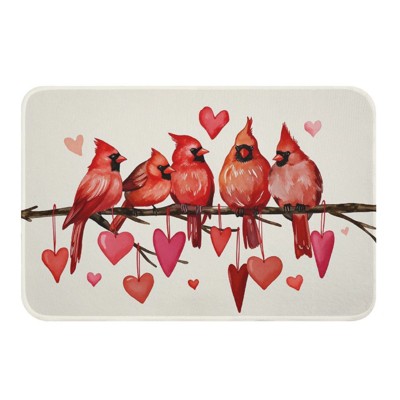 Valentine's Day Red Cardinals on Branch with Hanging Hearts Dual-Use Doormat & Bath Mat - Crystal Velvet, Non-Slip Absorbent 15.7x23.6in