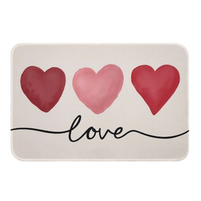 Valentine's Day Three Watercolor Hearts & Black Love Script Doormat & Bath Mat - Crystal Velvet, Non-Slip Absorbent 15.7x23.6in