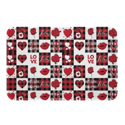 Valentine's Day Buffalo Plaid Heart & Lips Dual-Use Doormat & Bath Mat - Crystal Velvet, Non-Slip Absorbent 15.7x23.6in