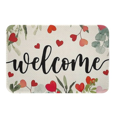 Valentine's Day Floral Hearts 'Welcome' Dual-Use Doormat & Bath Mat - Crystal Velvet, Non-Slip Absorbent, Easy Clean 15.7x23.6in