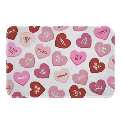 Valentine's Day Conversation Hearts "KISS HUG" Dual-Use Doormat & Bath Mat - Non-Slip Absorbent Crystal Velvet 15.7x23.6in
