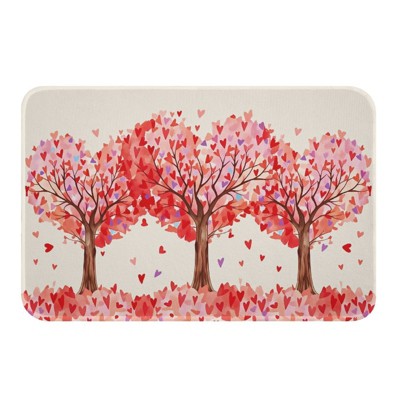 Valentine's Day Light Background Three Heart Trees with Pink & Red Leaves Dual-Use Doormat & Bath Mat - Crystal Velvet, Non-Slip Absorbent 15.7x23.6in
