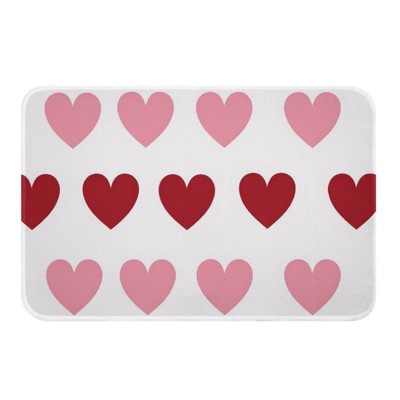 Valentine's Day White Background Pink & Red Heart Rows Dual-Use Doormat & Bath Mat - Crystal Velvet, Non-Slip Absorbent 15.7x23.6in