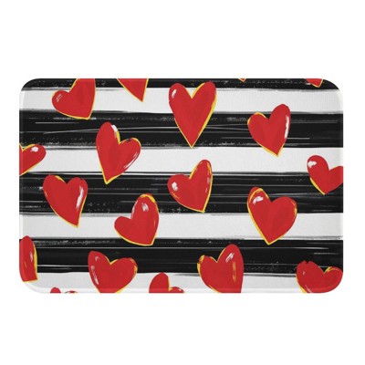 Valentine's Day Red Heart Yellow Outline Striped Mat - Crystal Velvet, Non-Slip Absorbent 15.7x23.6in