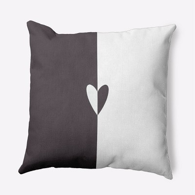 16"x16" Valentine's Day Modern Heart Square Throw Pillow Dark Gray - e by design: Festive Decor, Indoor Use