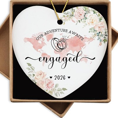 Lomsoe Engagement Ornament 2026 Engagement Heart Ceramic Ornaments Engagement Gift Ceramic Ornament Just Engaged Gift Wedding Decor 3"