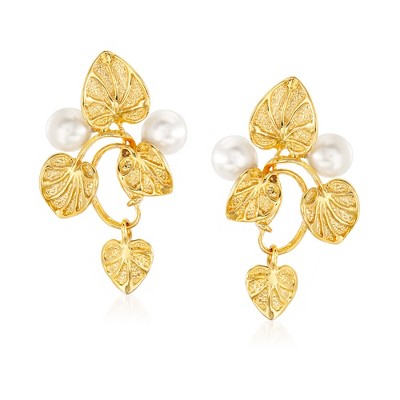 Ross-Simons Italian 6mm Cultured Pearl Vine Drop Earrings in 18kt Gold Over Sterling