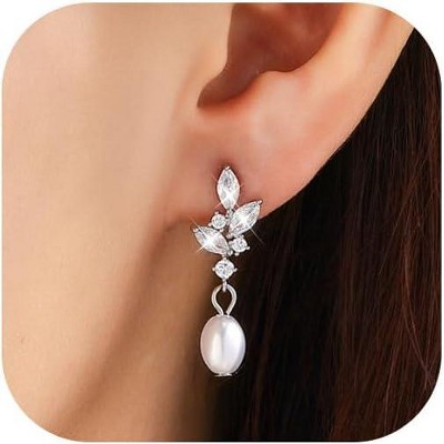 Guili Rhodium Plated Sterling Silver with Sparkling Cubic Zirconia and Lustrous Pearl Drop Earrings, Adding a Timeless Touch of Elegance