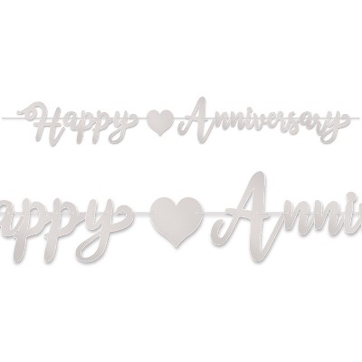 Beistle Foil Happy Anniversary Streamer, 7.5" x 6', (2/Pkg) Silver