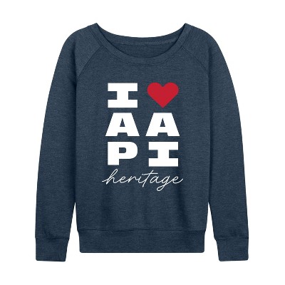 Women's - Instant Message - Leopard Heart Lightweight French Terry Wide Neck Long Sleeve Graphic Shirt