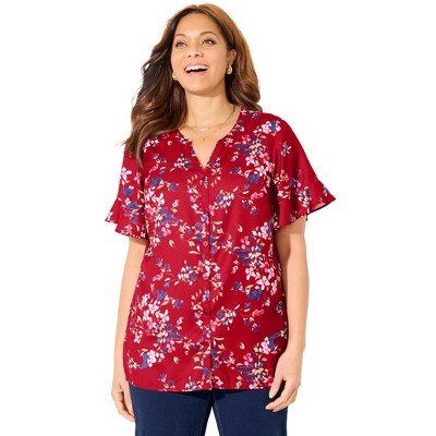 Woman Within Rayon 7-Day Three-Quarter Sleeve Tab-Front Tunic