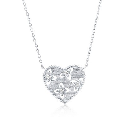 Bella Silver Sterling Silver, Lined Heart, Beaded Outline CZ Necklace - Silver - 16+2 Inch