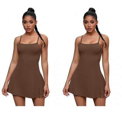 INSPIRE CHIC 2 Pcs Women's Spaghetti Strap with Built-in Bra and Shorts Workout Side Slit Square Neck Full Slips