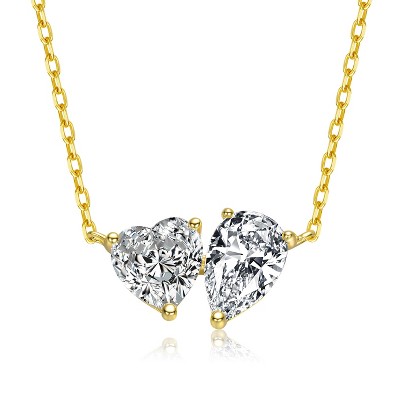 Guili 14K Gold-Plated Double Heart & Pear Pendant Necklace with Sparkling Cubic Zirconia in White or Gold – Elegant and Thoughtful Gift for Women